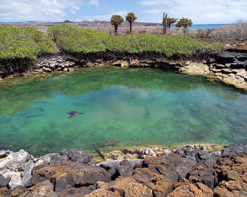 The fifth and final stop takes us to the stunning Rosa Blanca Bay, a white-sand beach considered one of the most beautiful in San Cristóbal. We will disembark for a short walk of approximately 10 minutes, where you can take photos of its lagoons, and then enjoy about 1 hour and 30 minutes of snorkeling. During the cold season, this beach becomes home to whitetip reef sharks. In addition, you will be able to admire a wide variety of sea turtles, sea lions, and manta rays in its crystal-clear waters.