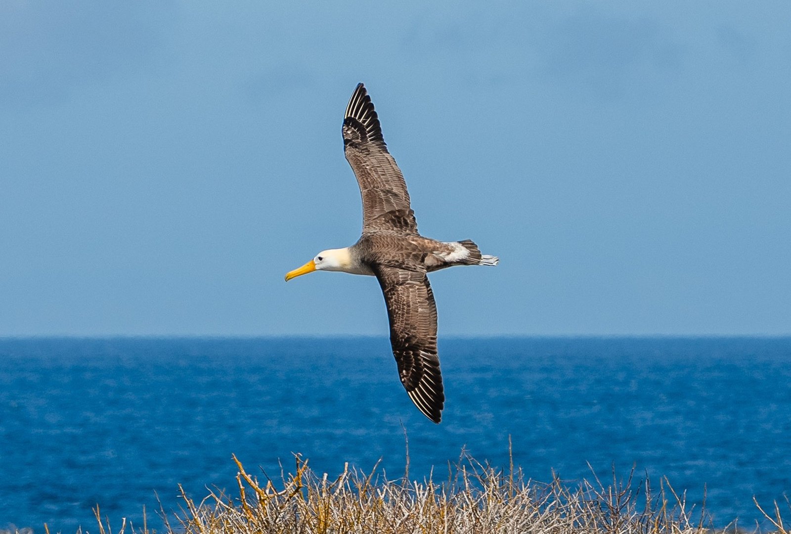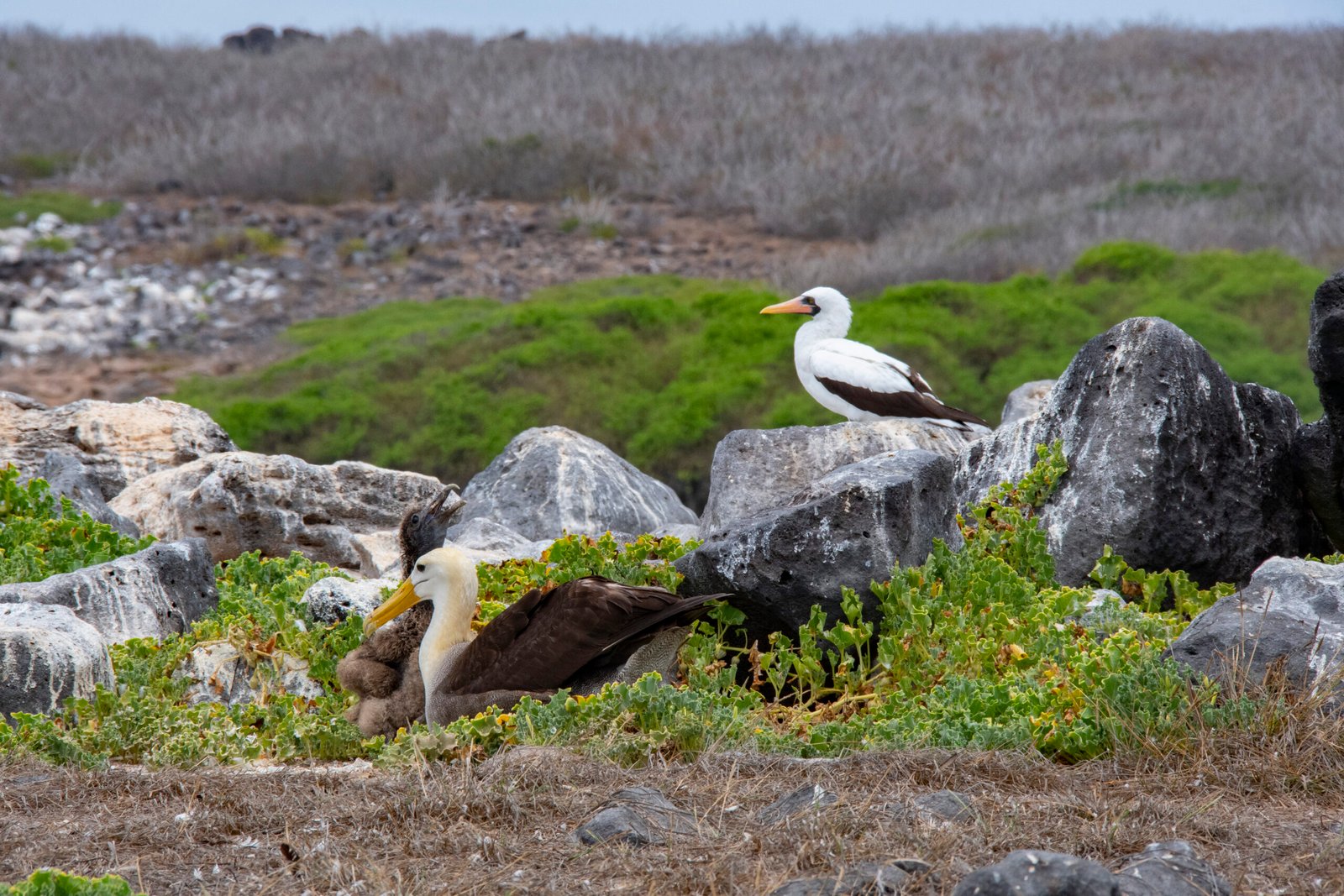 The first stage of our trip will take us approximately 2 hours of navigation until we reach Punta Cevallos. Here we will disembark and begin a fascinating walk of approximately 1 hour and a half. During this tour, we will have the opportunity to admire the majestic albatrosses characteristic of Española, as well as the charming blue-footed boobies and Nazca boobies. Their incredible flying skills and beautiful colors will leave us in awe.
